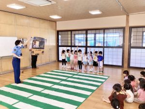 ゼンちゃんから交通安全のためのお約束を教えてもらい、子どもたちは楽しみながら学ぶことができました♪