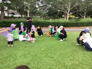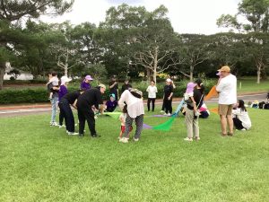 子どもたちが普段、こども園で行っているふれあい遊びを、親子で楽しみました♪