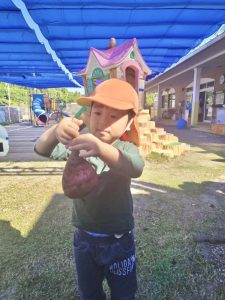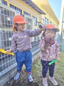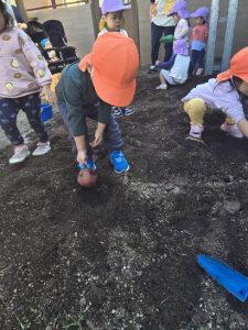 「こっちにあるよ!」「お芋見つけた!」と、きらきらした瞳でお芋掘りを楽しんでいました♪