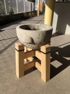 給食の先生より、お米の違いや鏡餅の意味などについてお話をもらい、もちつき開始!