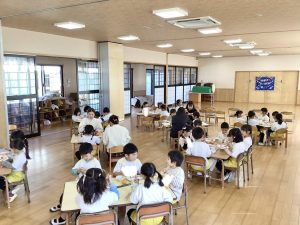 大好きなお母さんと一緒に美味しい給食を食べて、笑顔いっぱいのお誕生会となりました♪